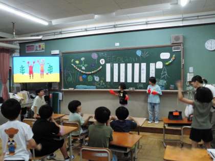 出し物の後は、ハンカチ落としとフルーツバスケットをして遊びました。楽しい時間を過ごし、また2学期の頑張りにつなげてほしいです。