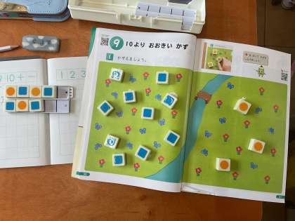 10より大きい数について、数図ブロックを使いながらみんなで確かめました。正しく数えることができました。