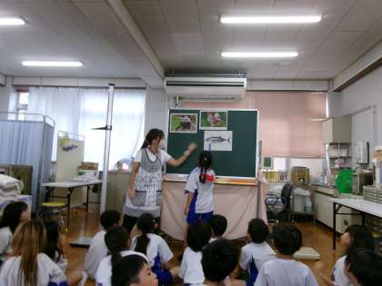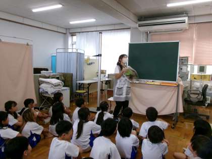 生き物の耳はどこにあるかというクイズに答えましたが、意外なところに耳がある生き物もいて、子どもたちはとてもびっくりしていました。