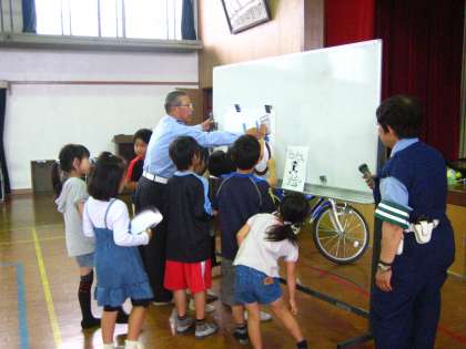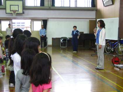 向日町警察署・森澤巡査部長様,乙訓地域交通安全活動推進委員・乾様,羽束師小学校PTAの方々にお世話になり,『講義・ビデオ鑑賞』をしていただきました。
