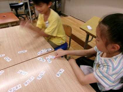 九九を唱えながらカードを表に返し、