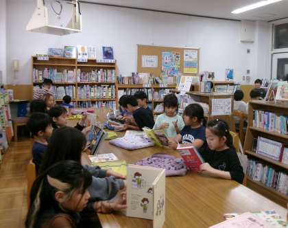 読み聞かせ後は、本を返却したり、新しく借りたりしました。