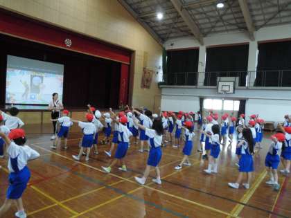 羽束師スポーツフェスティバルで踊るダンスの練習を体育館で行いました。