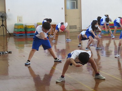 4年生全員でソーラン節の練習をしています。