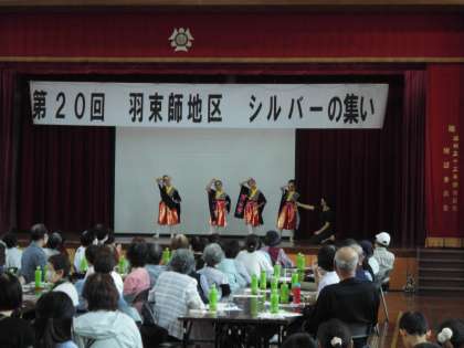 羽束師地域のお年寄りの方々のご長寿と健康を願い、さまざまな出し物が行われました。