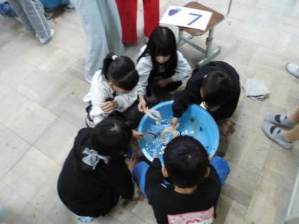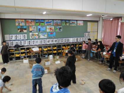 なかよしグループ(異学年の縦割りグループ)で、各教室でゲームなどのお店を開き、お店屋さん役とお客さん役に分かれて楽しく交流しました。