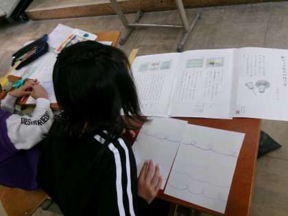 教科書の言葉・文・写真に注目し、1つずつ手順を確かめながら作っています。