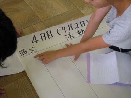 食事係では、5日間の活動の予定を大きな模造紙に書いています。