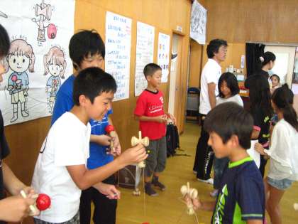 6年生の児童が,児童館に けん玉を教えに行きました。