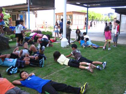 しっかり根をはることができるように,これまでは足を踏み入れることのなかった中庭の芝生。ひと夏を越えて,青々と育ってきました。そこで,昨日より入っても良いことになりました。休み時間には,子どもたちは気持ちよさそうに寝転がったり,座ってお話したり,とても楽しそうな様子です♪