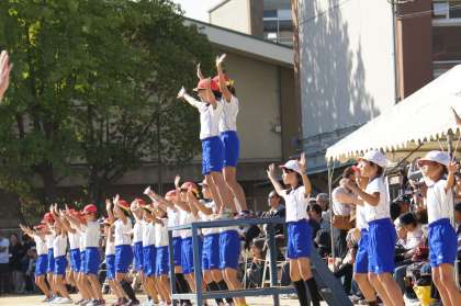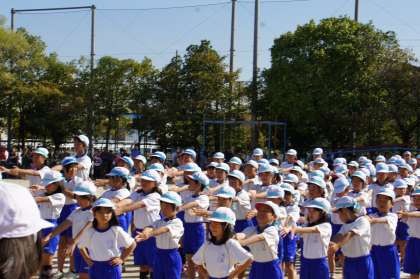 準備体操をかねた全校ダンスも元気よく踊る姿が見られます。