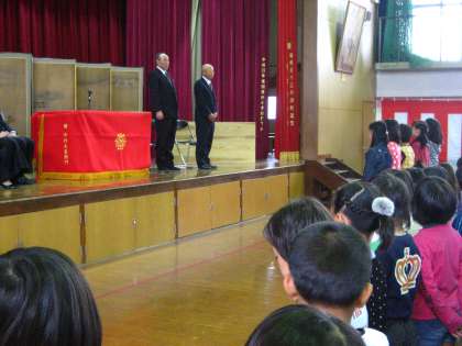 地域の羽束師自治会長 大川保様より羽束師小学校に屏風を寄贈して頂きました。