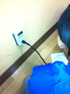 ワットアワーメーターという機械を使って、パソコン、電子レンジ、冷蔵庫、湯沸器・・・などの消費電力を調べました。