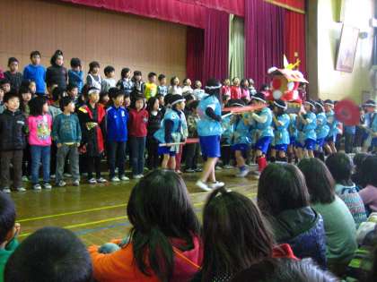 また,太鼓や神輿(みこし),はっぴなど,お祭りの楽しい雰囲気出ていて,これまでの練習の成果があらわれた2年生の発表会でした。