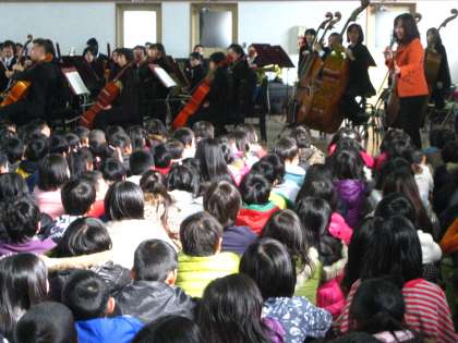 「指揮者体験コーナー」や「オーケストラと一緒に歌おう♪」など,楽しい企画も用意していただきました。保護者や地域の方も約80名の参加がありました。