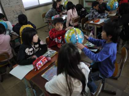 社会科の学習では,「地球儀」「世界地図」を使って,