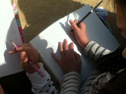 空をじっくり観察して,雲の様子を絵にかいたり,気づいたことをノートにまとめます。