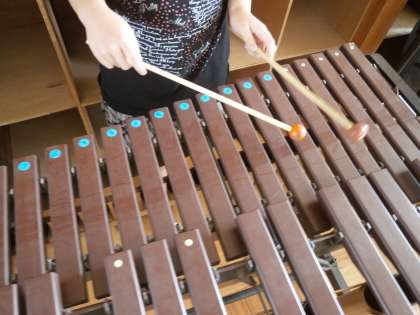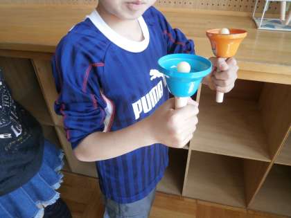 まずは,グループごとにいろいろな楽器に触れて「音を楽しみ」ました♪