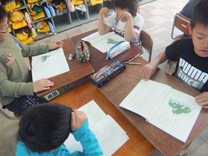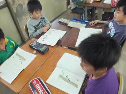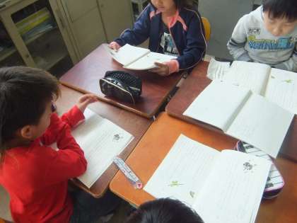 「きつつきの商売」の音読発表会に向けて練習をがんばっています。