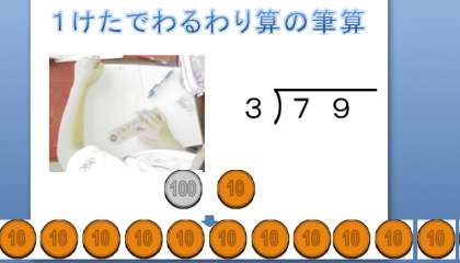 算数では,1けたでわるわり算の筆算の学習をしています。