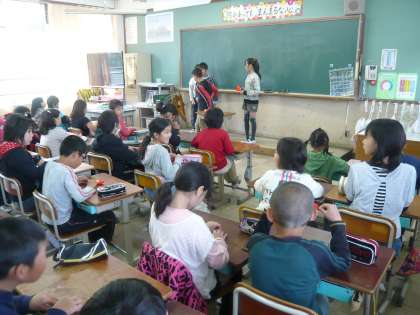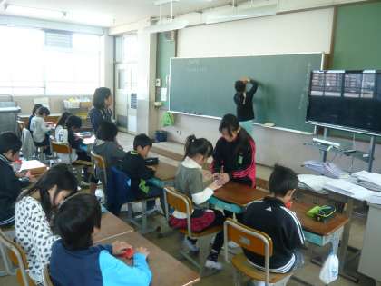 6年生が修学旅行でもっていく千羽鶴を4年生も折りました。