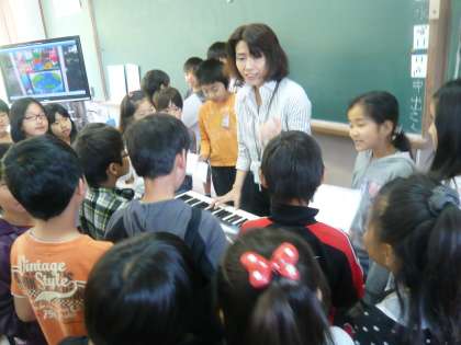 中間休みに各学級代表の児童があつまって,役割ごとに練習をしました。