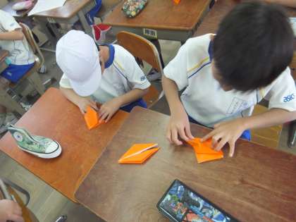 原爆や戦争,平和について,6年生に教えてもらった後,平和に対するおもいや願いを込めて千羽鶴を折りました。