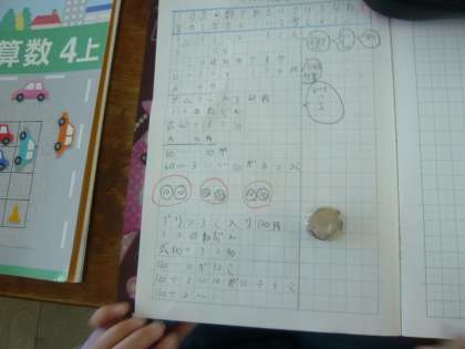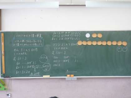 算数の学習では,1けたの数でわる,いろいろなわり算の仕方について考えました。