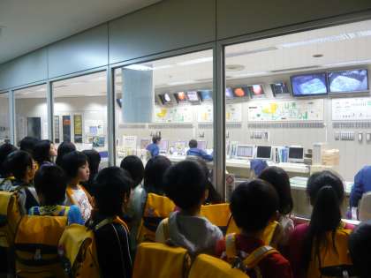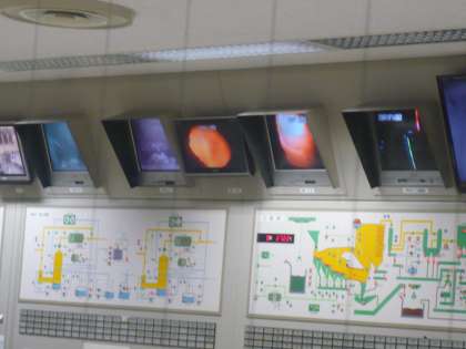 中央制御室では,ごみをクレーンで運ぶ様子やごみを燃やしている様子を職員さんが常に観察していました。