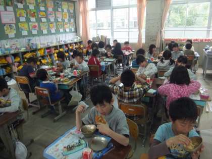 もくもくタイムが終わると,残りの給食を楽しくおしゃべりをしながら食べていました。