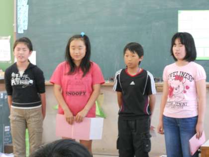 今は修学旅行に向けて,峠三吉さんの詩“Give Back The Human(人間をかえせ)”を練習中です。