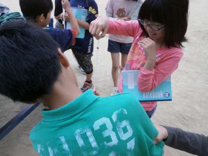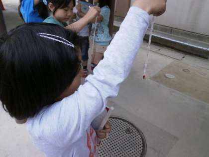 校庭に出て,気温をはかりました。