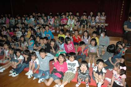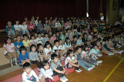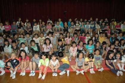 入場後は少し硬い表情でしたが、各学年の出しものを見たり聞いたりしていくうちに、少しずつ緊張が解けてきました。それを察した先生方が、手品や運動、ダンスや呼びかけを披露してくれて、楽しんでいると一気に空気がなごみました。