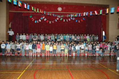 1年生からは、全校の皆さんへのお礼に、歌をプレゼントしました。歌は、「スマイル」です。大きな声で元気よく歌いました。歌い終わったら、1年生はみんなニコニコ顔でした。楽しく愉快な、「1年生を迎える会」は、2時間が短く感じる会でした。
