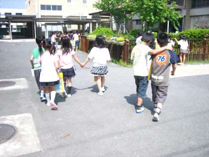 2年生は,1年生が迷子にならないように しっかり手をつないでいました。