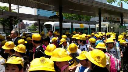 広島に着きました。今から路面電車に乗車します。京都にはない路面電車にみんな興奮気味です。路面電車のプチ旅行へ出発!!