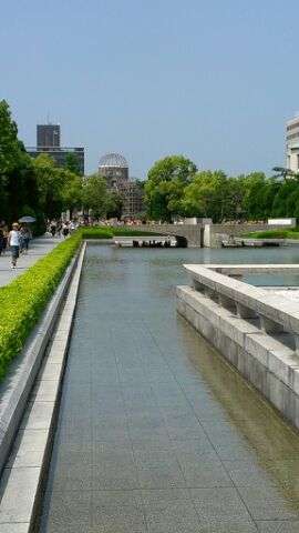 平和公園でオリエンテーリングをしています。グループで協力して活動しています。太陽の下は暑いですが、木陰の風はたいへんさわやかです。