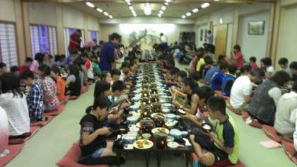 晩御飯の風景です。しっかり食べて栄養補給。修学旅行の夜はきっと長いことでしょう・・・