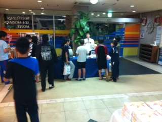 おうちへのおみやげを選んでいます。明日のことも考えて、計画的にお買い物。