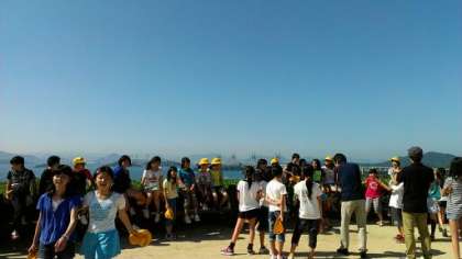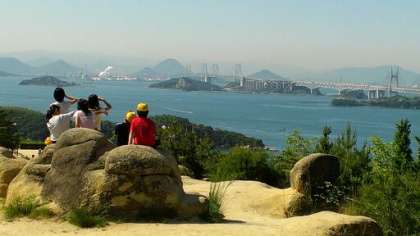 真っ青な空に、真っ青な海。真夏のような日差しがとてもまぶしいです。瀬戸内海と瀬戸大橋の雄大な眺めを満喫しました。