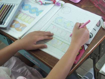 どこにコンパスの針を置くかに気をつけながら描くことができました。