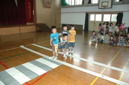 向日町警察署の方に来ていただいて、交通安全教室を行いました。安全な道路の渡り方や曲がり方を教わりました。道路に潜む危険についても教えてもらいました。交通ルールを守って気をつけて登下校してください。