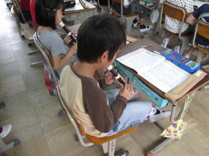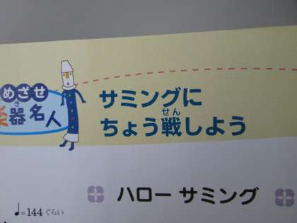 「ハローサミング」ではじめて高い「ミ」をサミング(左手の親指でうらあなにすき間を作ること)で演奏しました。