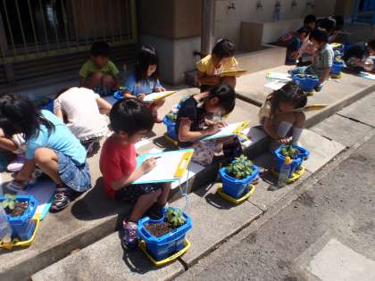 生活科の学習で植えたアサガオが順調に育ってきました。発芽して本葉が開き始めました。この喜びと不思議さを忘れないうちにスケッチしました。これからの成長がさらに楽しみになってきました。