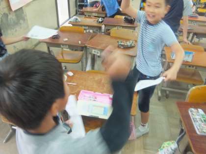 自分のできることを振り返った後,他の人と交流ゲームをしました。