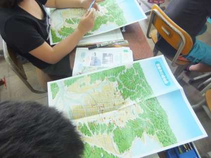 京都市の絵地図を見て,行ったことのあるところを調べました。