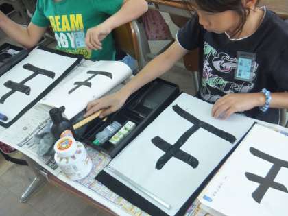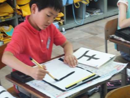 始筆(書き始め)・送筆(書いている途中)・終筆(書き終わり)に気をつけながら,ゆっくり丁寧に書いていました。