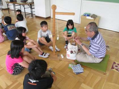 京くみひも工業協同組合の方が丁寧に説明してくれて,みんなどきどきしながらも「はやくやってみたい!」という気持ちが高まっていました。