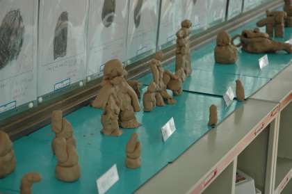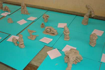 粘土でたくさんの部品を作って、積木のように重ねて作品が出来上がりました。みんな創意工夫された作品です。1年生らしく、かわいらしささと優しさが備わった作品になりました。
