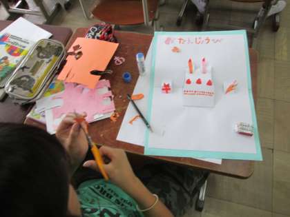 休日参観に作成していた「とび出すメッセージカード」が続々完成しています。